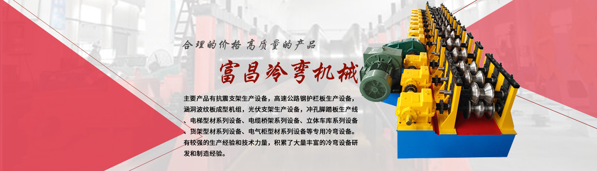 主要產(chǎn)品有抗震支架生產(chǎn)設(shè)備,高速公路鋼護(hù)欄板生產(chǎn)設(shè)備,涵洞波紋板成型機(jī)組,光伏支架生產(chǎn)設(shè)備,沖孔腳踏板生產(chǎn)線、電梯型材系列設(shè)備、電纜橋架系列設(shè)備、立體車庫(kù)系列設(shè)備、貨架型材系列設(shè)備、電氣柜型材系列設(shè)備等專用冷彎設(shè)備。有較強(qiáng)的生產(chǎn)經(jīng)驗(yàn)和技術(shù)力量,積累了大量豐富的冷彎設(shè)備研發(fā)和制造經(jīng)驗(yàn)。